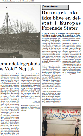 Af Lave K. Broch, 1. suppleant til EU-parlamentet for Folkebevægelsen mod EU og medlem af Folkebevægelsen mod EU på Christianshavn og i Indre By